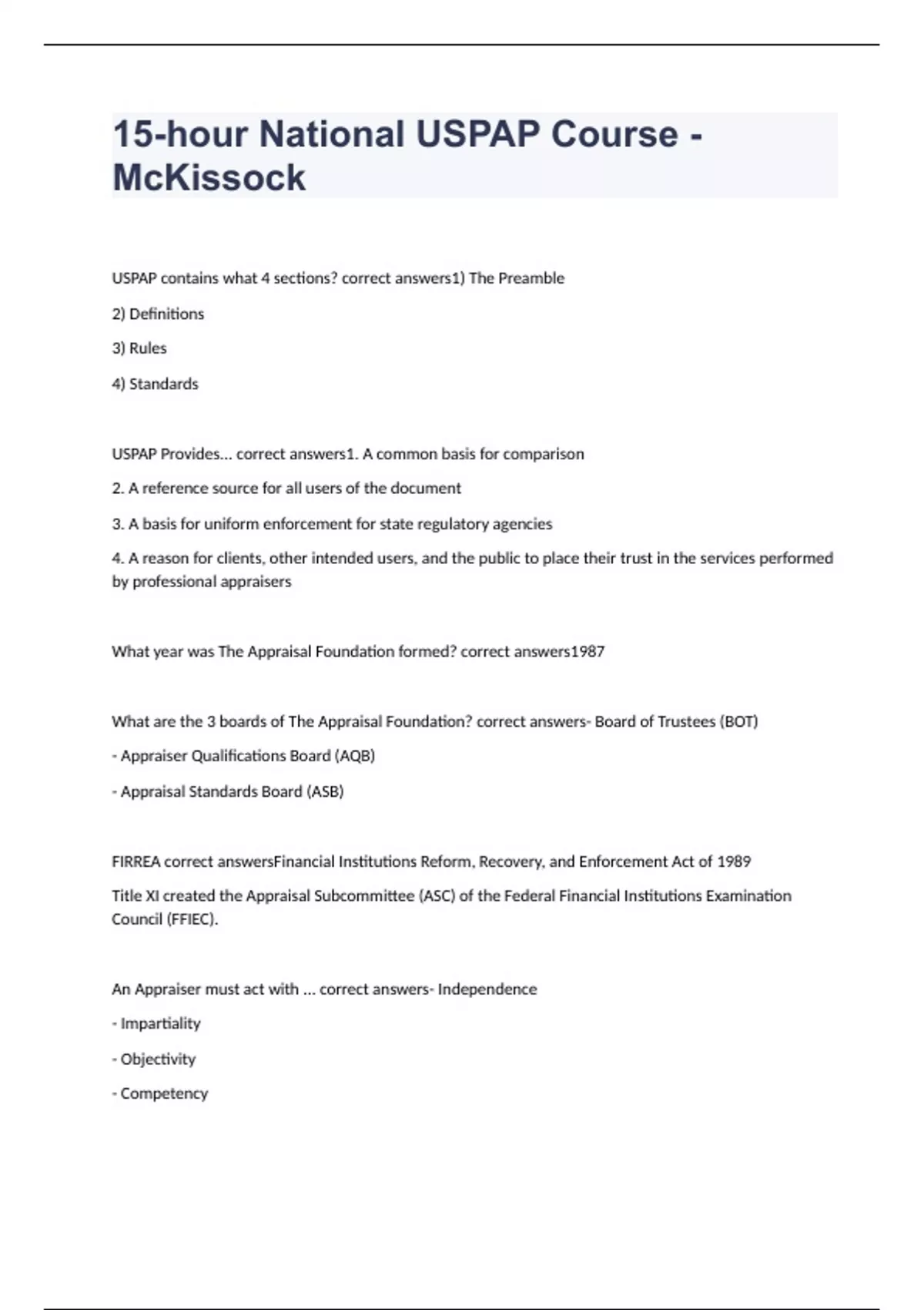 15hour National USPAPMcKissock EXAM 100 CORRECT 15hour National