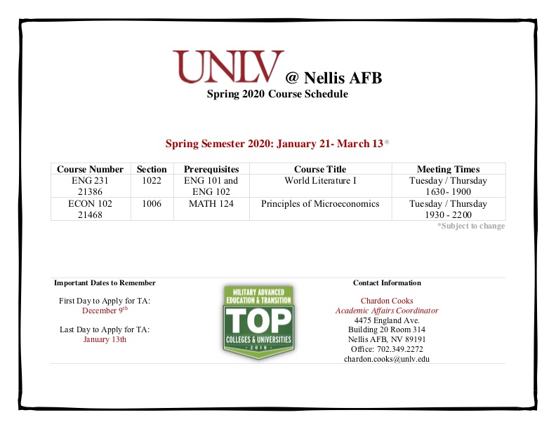 UNLV/Nellis AFB Office Academic Advising University of Nevada, Las